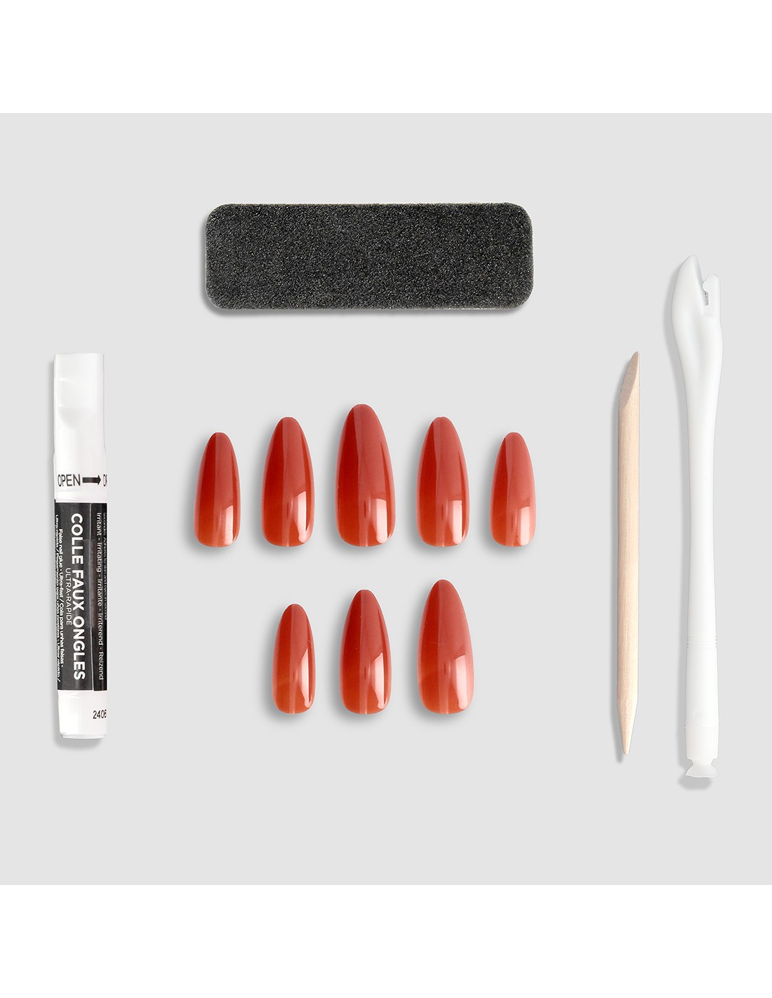 Le kit contient tout ce qu’il vous faut pour une pose facile et soignée : une colle de 2g, une lime à ongles, un bâtonnet repousse-cuticules et un applicateur.
