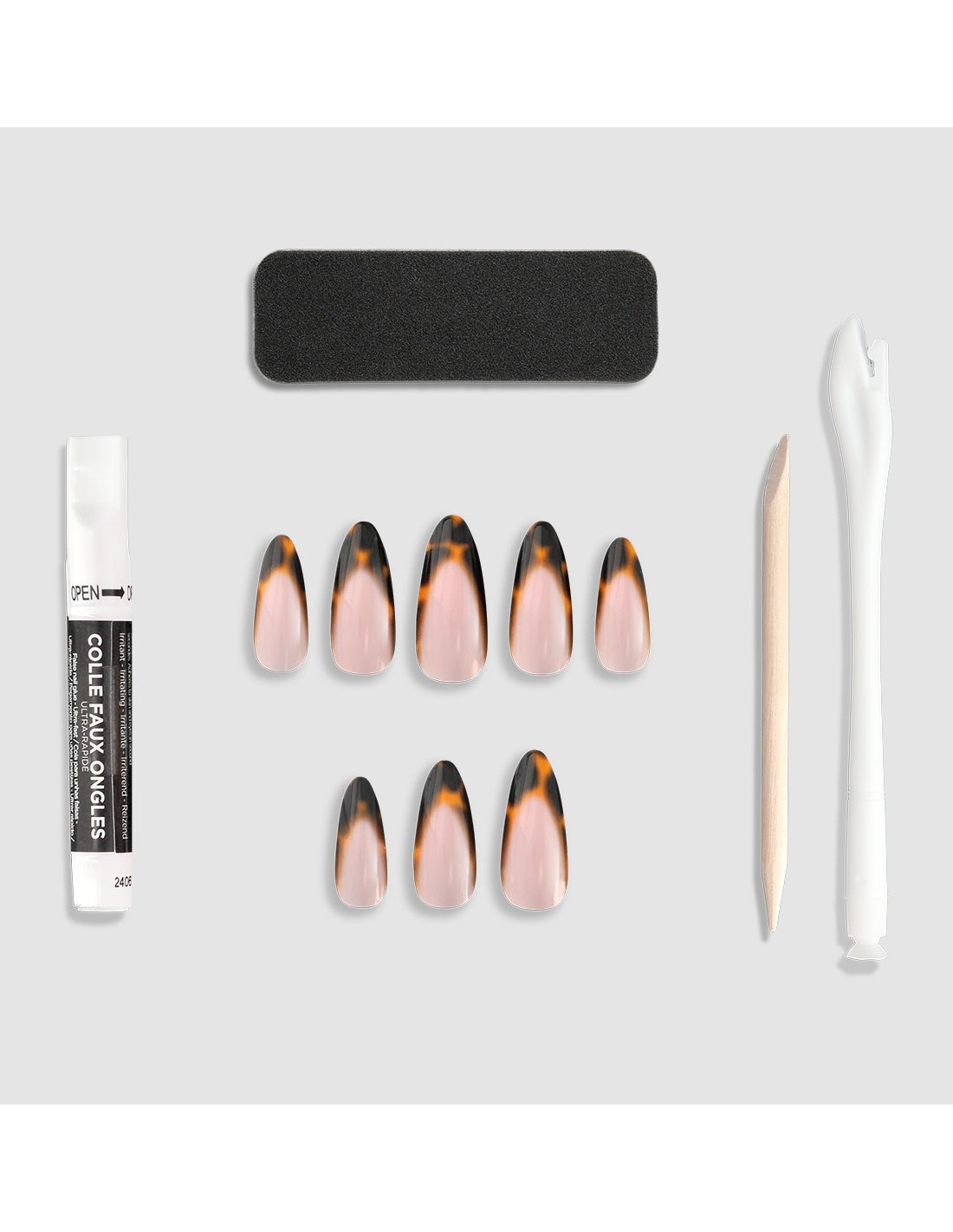 Affirmez votre style avec notre collection Amber Haze ! Retrouvez nos kits de 24 faux ongles stiletto aux designs audacieux et variés.