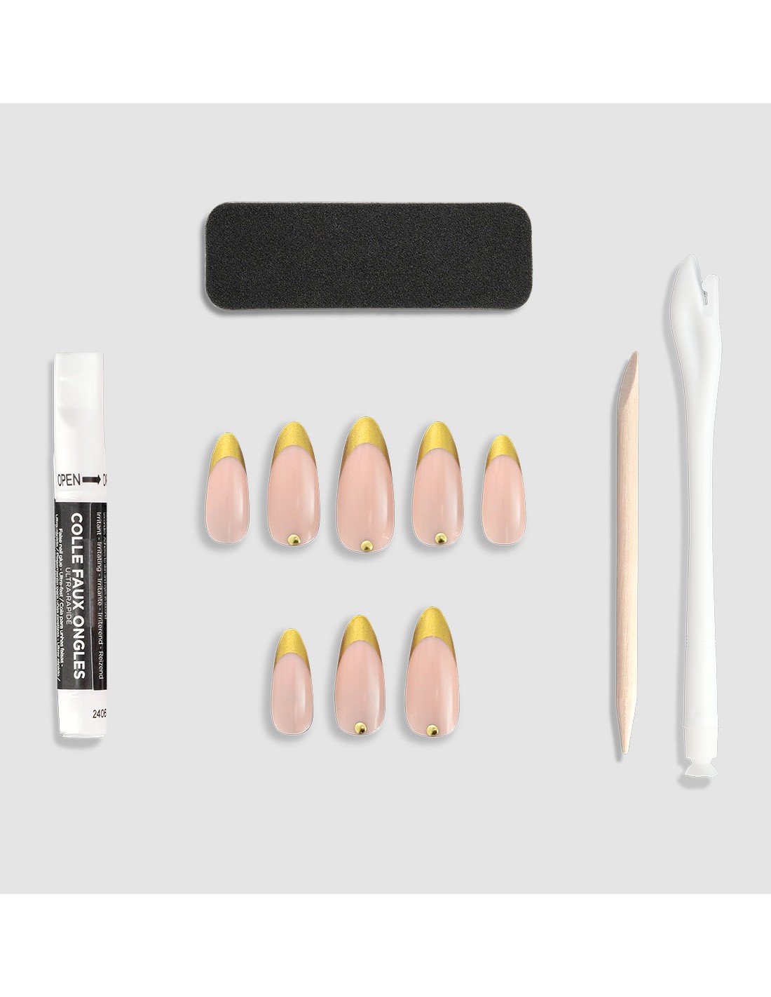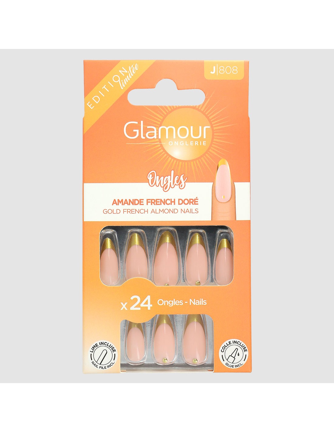 24 faux ongles amande fantaisie Amber Haze - French doré