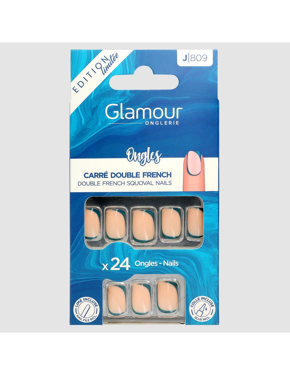 24 faux ongles carré fantaisie Ocean Teal - Double french