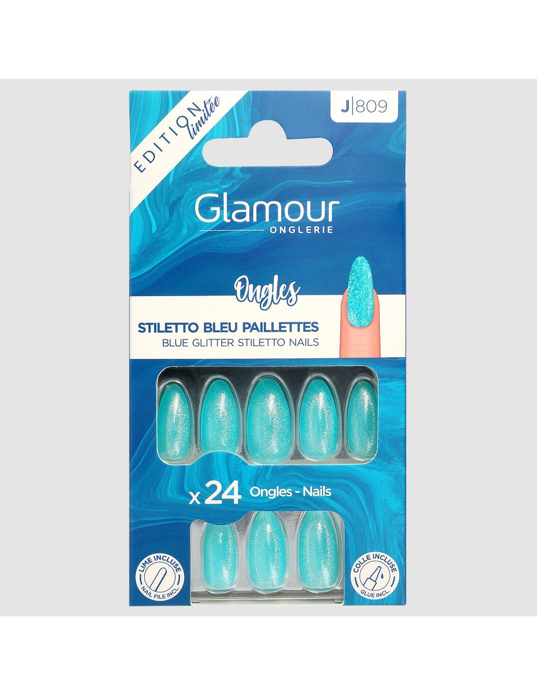 Affirmez votre style avec notre collection Ocean Teal ! Retrouvez nos kits de 24 faux ongles stiletto aux designs audacieux et variés.