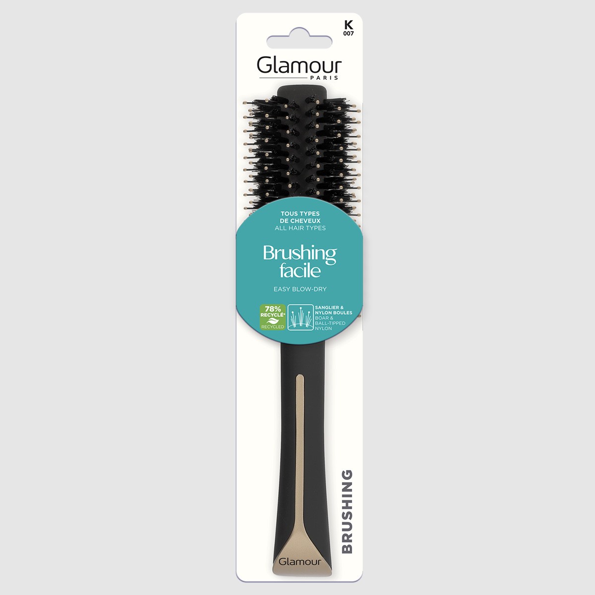 Les picots nylon boules facilitent le coiffage tandis que les poils de sanglier révèlent la brillance naturelle des cheveux, pour un brushing facile et une finition soyeuse.