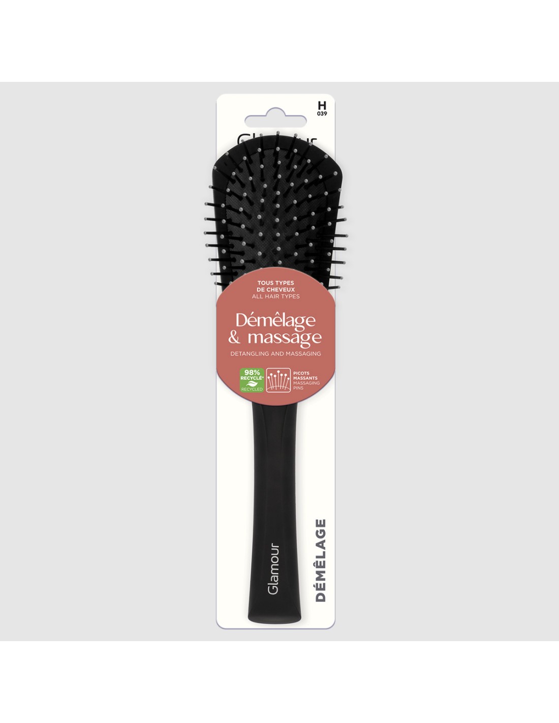 Mouvement : Effectue des passages fluides. Les picots à bouts ronds permettent un massage du cuir chevelu avec douceur.