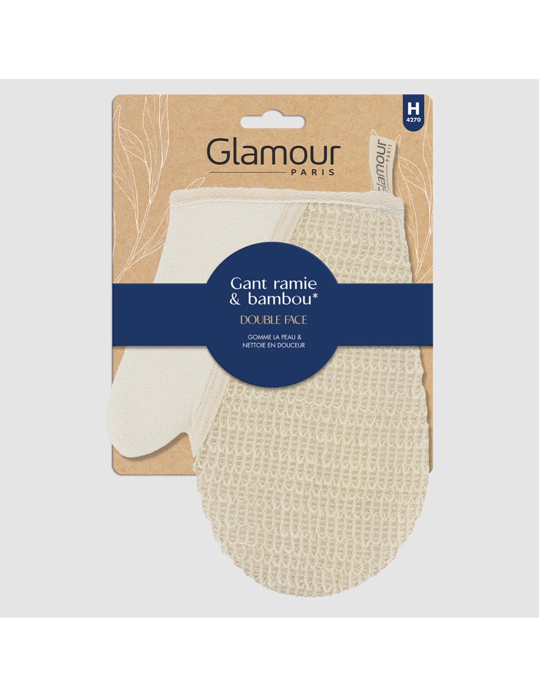 Gant double face en ramie et bambou idéal pour gommer et nettoyer en douceur.