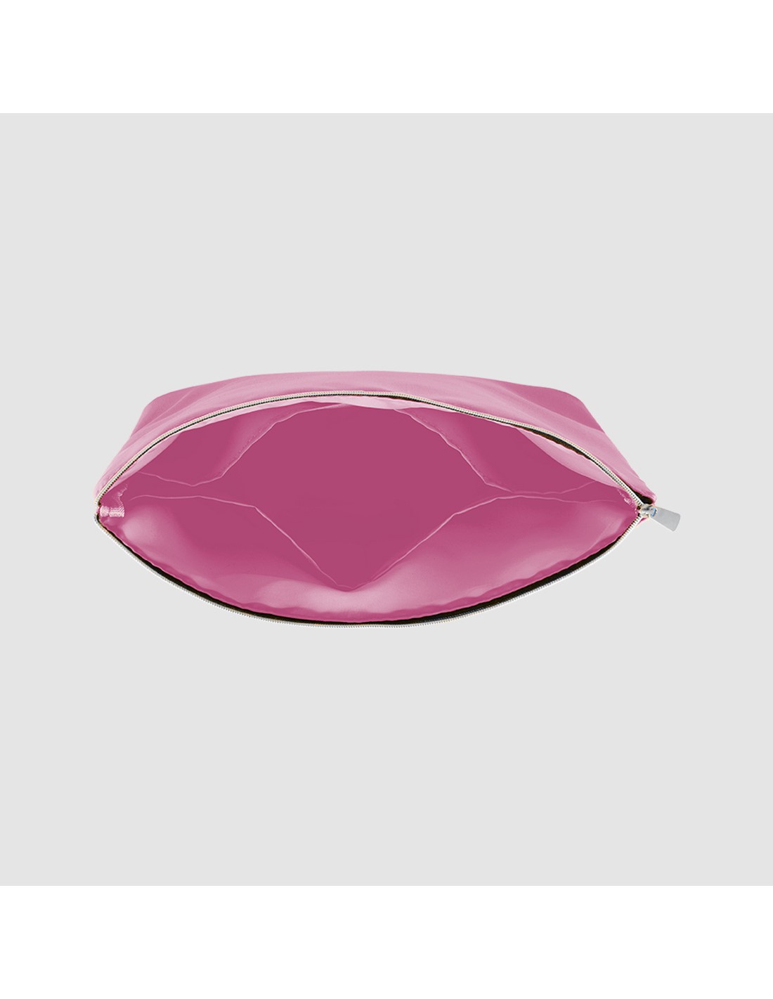 Trousse de toilette en forme trapèze au design indémodable, dotée d'une fermeture zip sur le dessus.