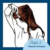 4. Saisissez votre mèche dans le lisseur et faites ¼ ou un demi-tour côté extérieur. Restez dans cette position quelques secondes.